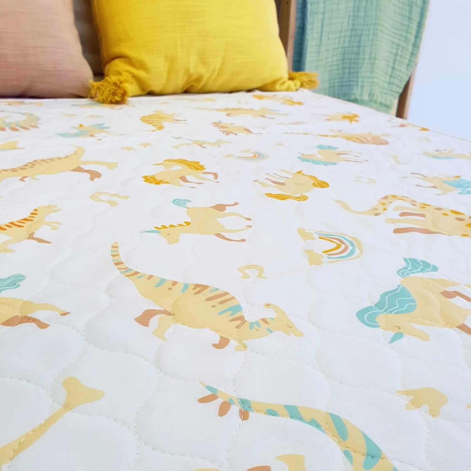 This reusable bed pad from Conni Kids is designed with a highly absorbent core and a waterproof backing to prevent leaks and stains. Made from soft, skin-friendly materials, it is washable and durable for long-term use, featuring vibrant unicorn and dinosaur prints that appeal to children.