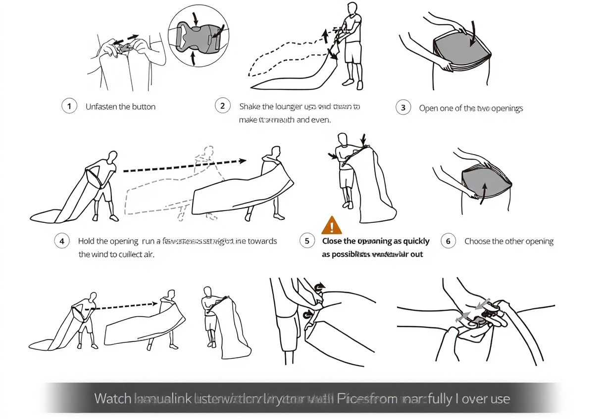 Simply unfold the lounger, hold it open, and run or swing it through the air to fill it quickly; no pumps are needed.