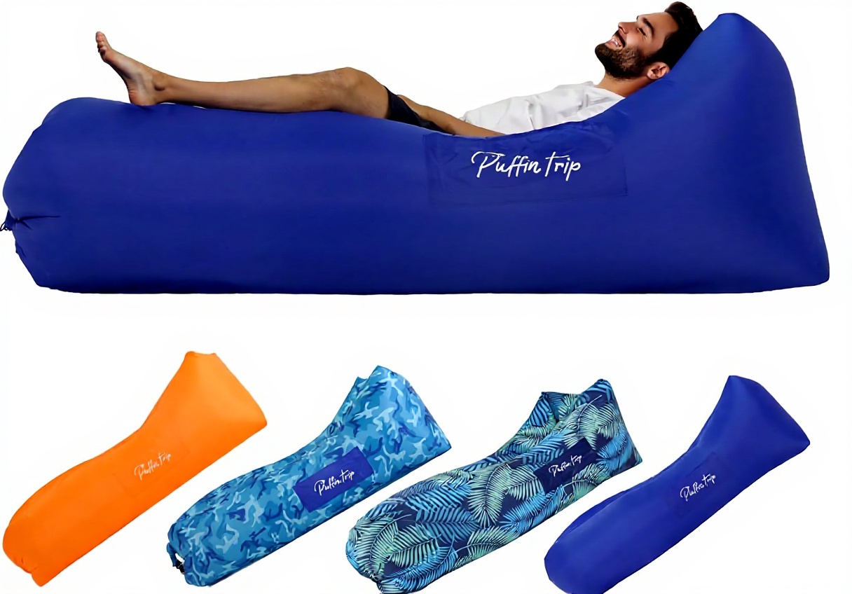This inflatable lounger air sofa offers a comfortable and portable seating solution for outdoor adventures. It is waterproof, lightweight, and quick to set up, making it ideal for beach trips, camping, picnics, and music festivals. Enjoy relaxation anywhere with this durable and easy-to-carry couch.